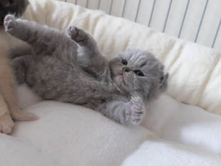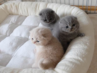 Er is een blauw katertje, een crème katertje en een blauw poesje