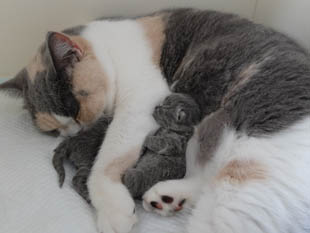 Vanochtend vroeg zijn de kittens van Hanne Sophie en Byron geboren. Hanne Sophie