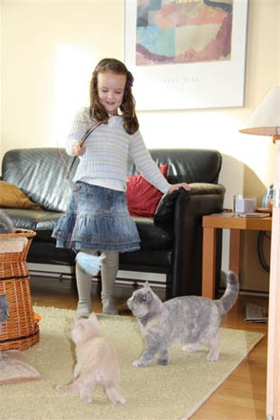 En dan wordt het 11 december en zijn de C-tjes 13 weken oud, tijd om naar de nieuwe baasjes te gaan! Wat zal het hier stil worden zonder deze kleine donders...Na een wat hectische eerste week, waarbij we al de eerste dag afscheid moesten nemen van het enige blauwe poesje in dit nest, kan ik niet anders zeggen dan dat het verder prima is gegaan. Ik ben erg blij dat er 5 lieve, gezonde kittens vol warmte ontvangen worden door hun nieuwe ‘personeel’. Ik heb van ze genoten, het waren alle 5 super gezellige, lieve en soms ondeugende kittens. Ik hoop dat ze een heerlijk leventje bij hun nieuwe baasjes gaan krijgen en dat zij veel plezier aan hun nieuwe huisgenootje gaan beleven.