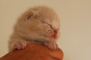 Creme Bikkel is een kleine ode aan Bikkeltje, het katertje uit het B-nestje. Nu bijna een jaar geleden werden de 7 kittens van Donja en Spike noodgedwongen veel te vroeg geboren m.b.v. een keizersnee. Ze hadden geen overlevingskansen en binnen 24 uur moesten we van alle 7 al weer afscheid nemen. Van Bikkeltje het laatste, en hij staat daarom symbool voor dit nestje wat zo mooi had kunnen zijn....